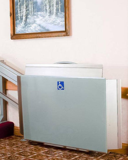 Platform folds up to keep stairs unobstructed; 4 sizes available, including ADA-compliant